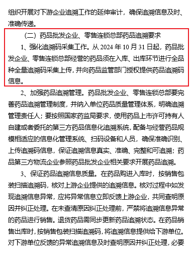 其他区域的药监部门也会陆续要求落实药品追溯码采集工作。