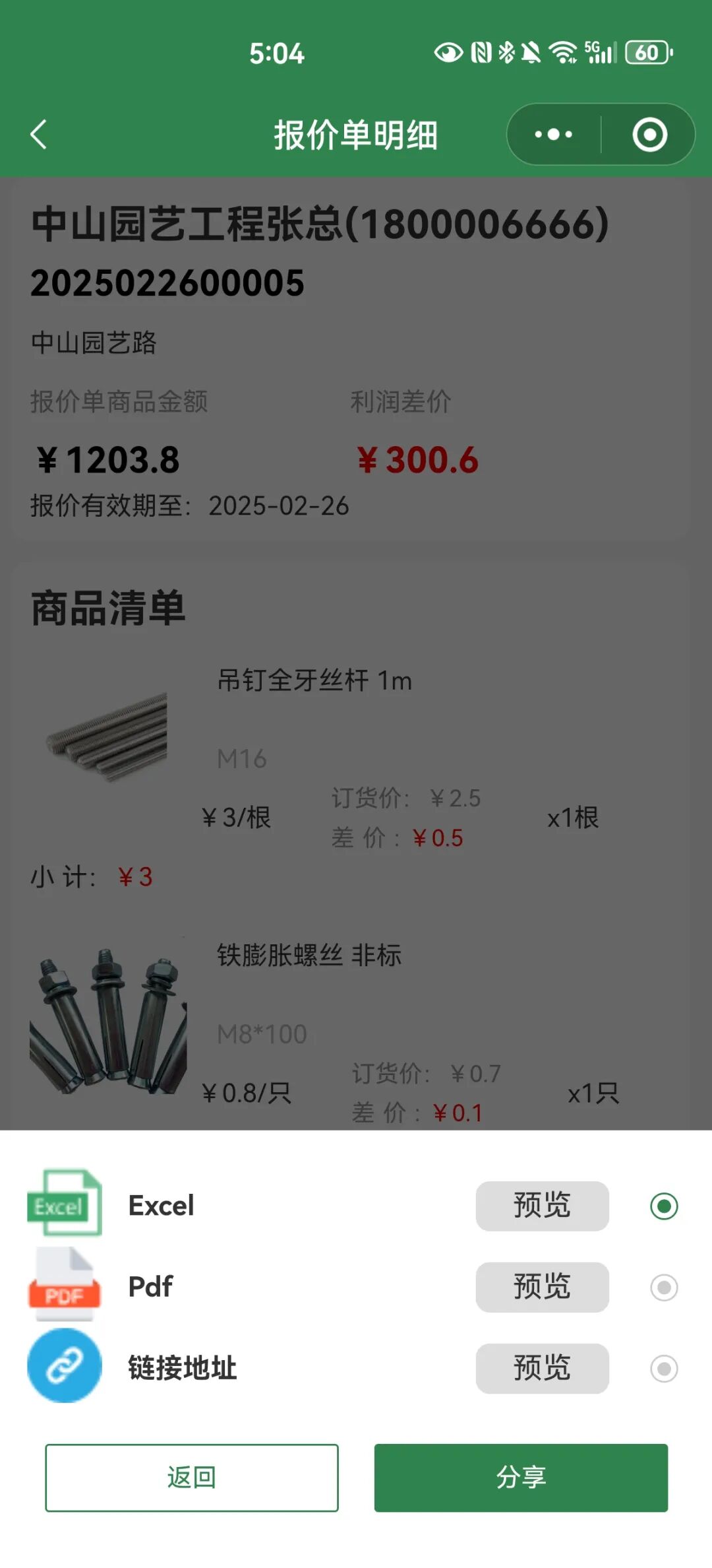 预订单模式快捷生成图文报价单,自动计算利润,一键分享转发,1分钟不到即可完成报价
