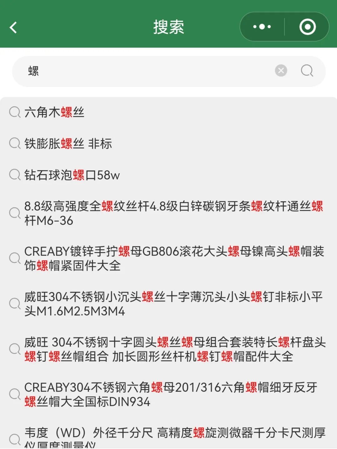 支持分词联想 / 模糊搜索 / 规格筛选,客户找货更快;后台统计关键词辅助需求预判