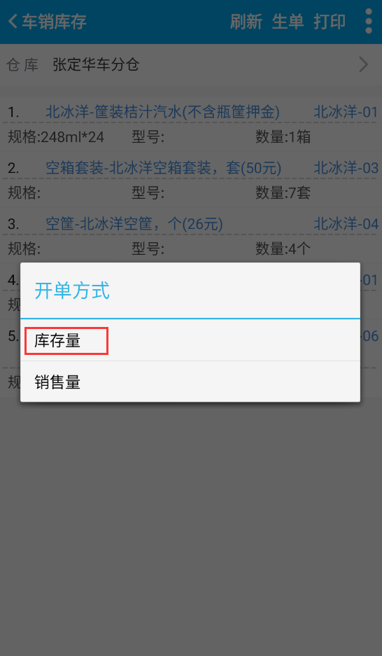 业务结束后,系统实时计算出车子内的剩余库存,不用业务员手工清点数量,一键进行还货,快速生成一张调拨单,数据流转更准、更快。