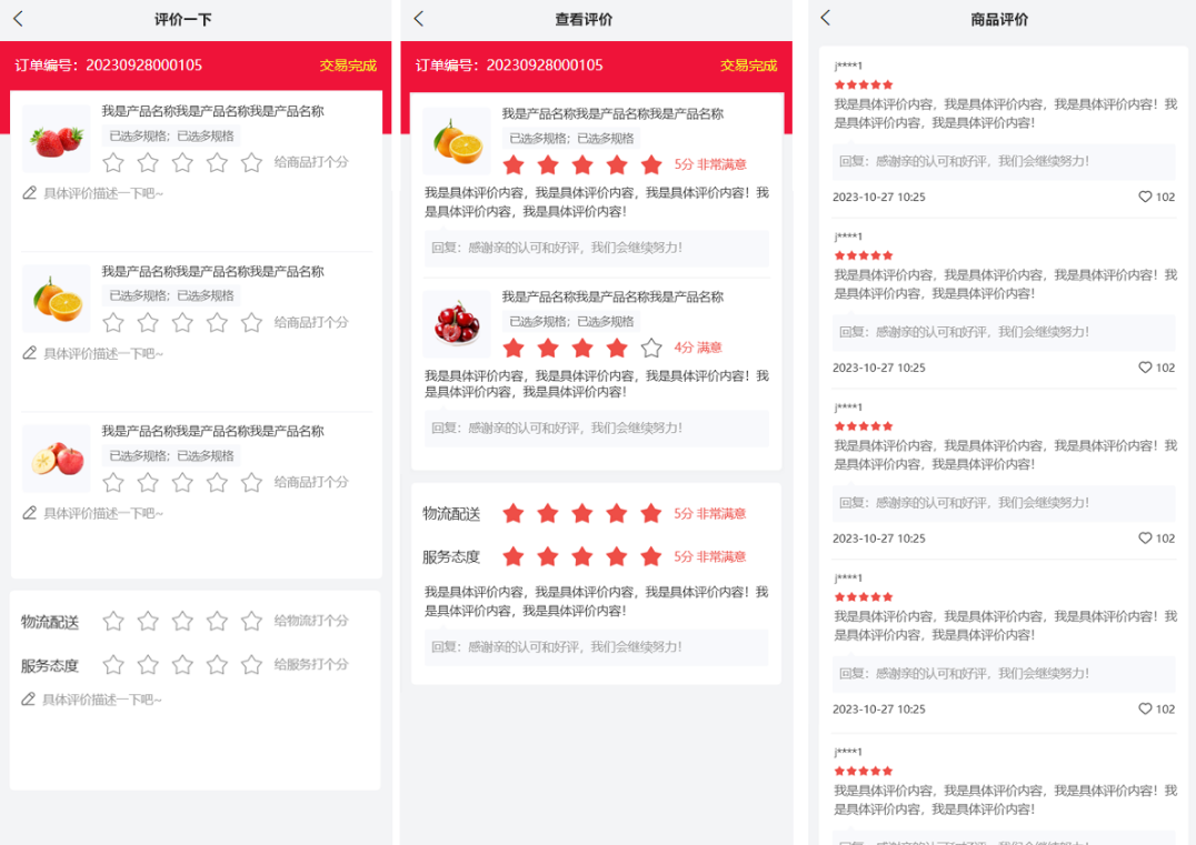 订单完成后客户可对商品和配送服务进行评价,通过评价进行改进,提高客户满意度。