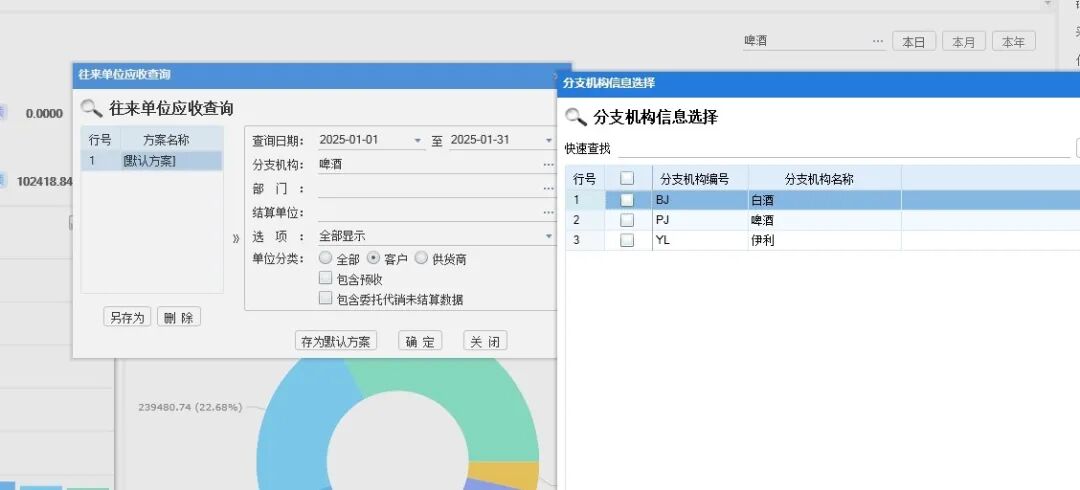 通过ERP A8系统的分支机构功能将白酒、啤酒、伊利这三个品类分为3个分支机构进行单独管理,实现了品类间的清晰分离与专业化管理。每位业务员只需专注于处理其负责品类的订单处理、财务报告、费用核算。这种方式不仅简化了业务员的工作流程,减少了因多品类混杂带来的混乱,还提高了数据的准确性和决策的有效性。